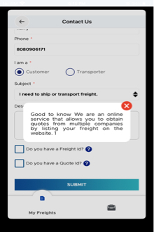 | Freight / Date | Origin | Destination | Distance | Quotes | |